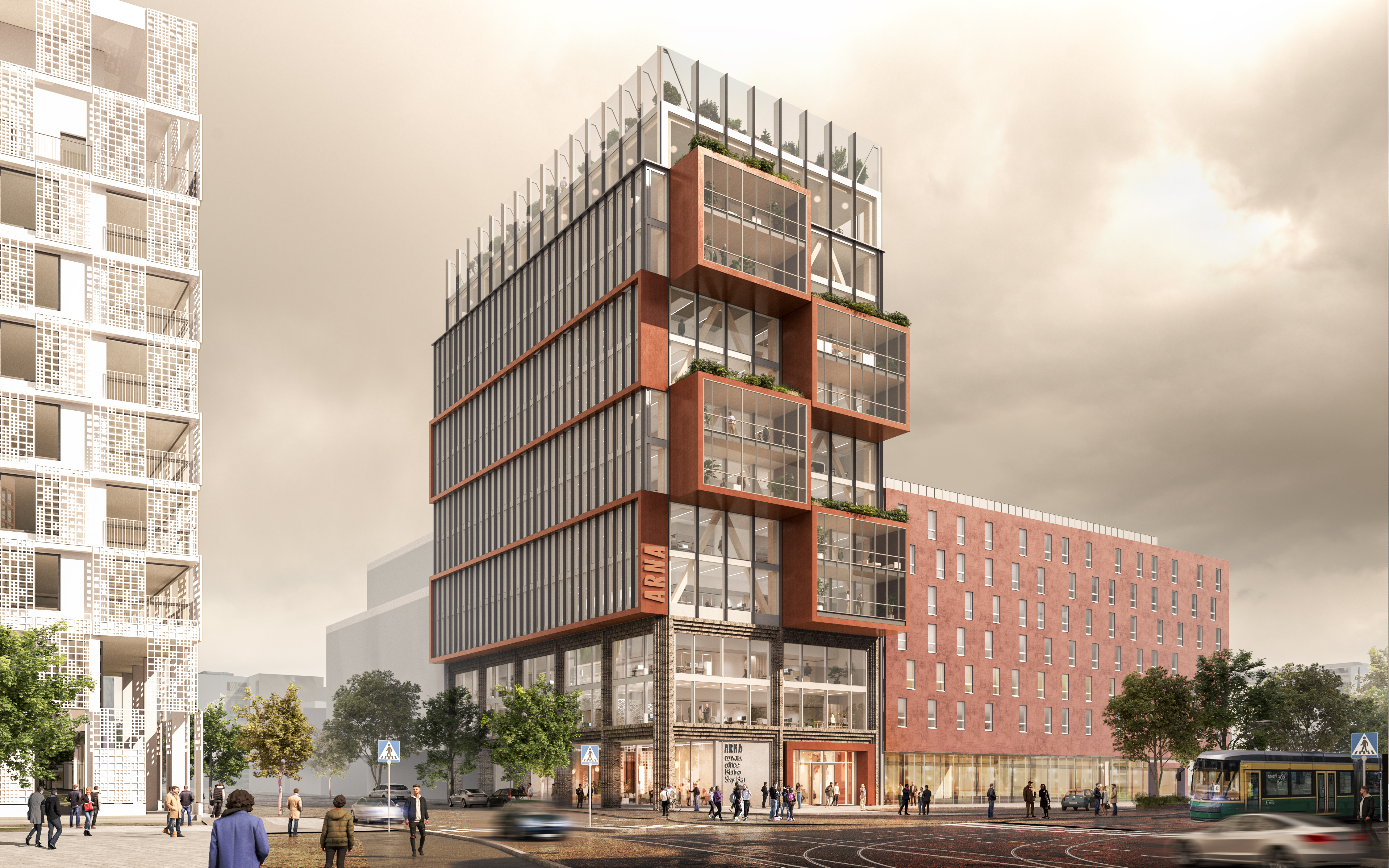 Jätkäsaareen kohoava Arna on 12-kerroksinen toimitilakiinteistä ja kaupunginosan ainoa uudiskohde tällä hetkellä. Rakennus valmistuu vuoden 2027 aikana osoitteeseen Länsisatamankatu 20.